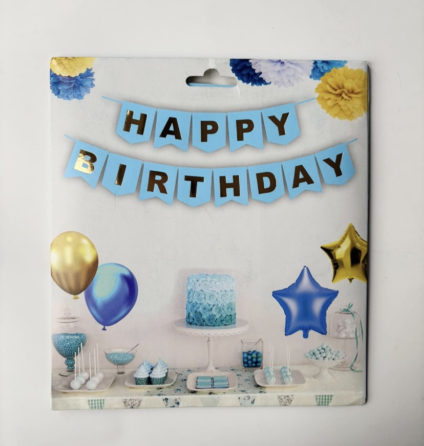 Happy Birthday Varak Yaldızlı Lüx Banner Mavi - Gold