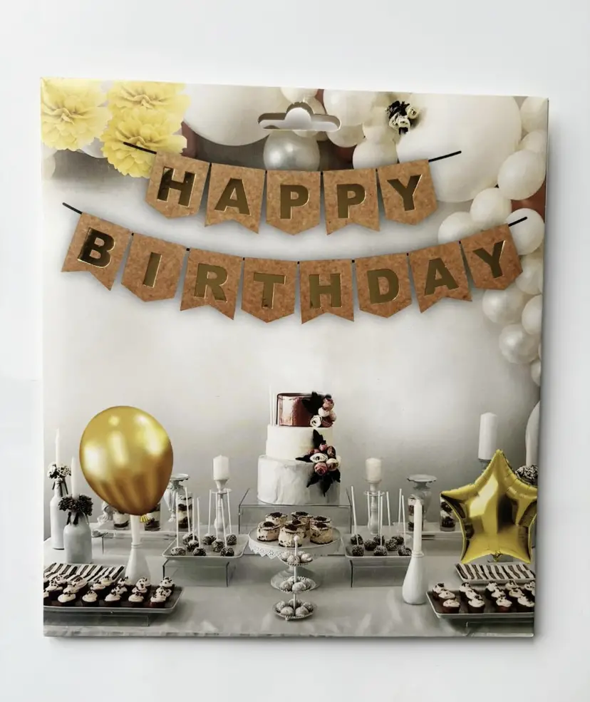 Happy Bırthday Varak Zarf Banner Kraft Gold